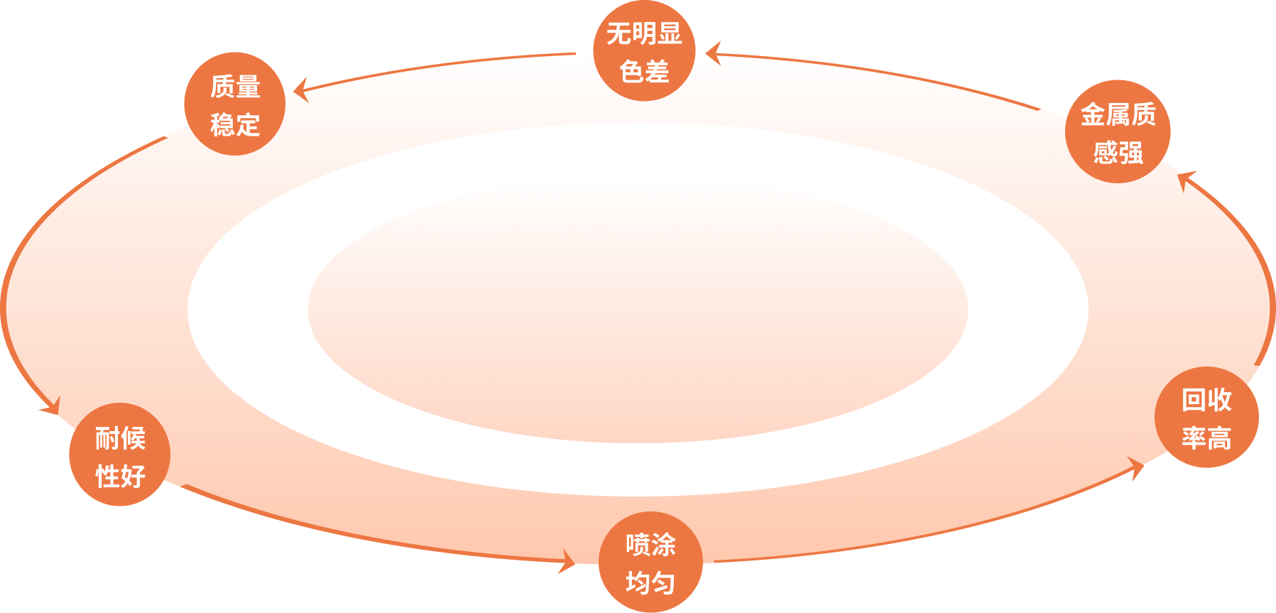 “漆改粉”特色品種,顏色穩(wěn)定金屬效果強,對金屬基材附著力好;金屬粉末涂料采用德國進口綁定機生產,批次色差穩(wěn)定。避免了干混金屬粉積槍頭現象,新粉回收粉同樣可應用;金屬效果顏料含量高,立體幻彩閃爍效果; ...